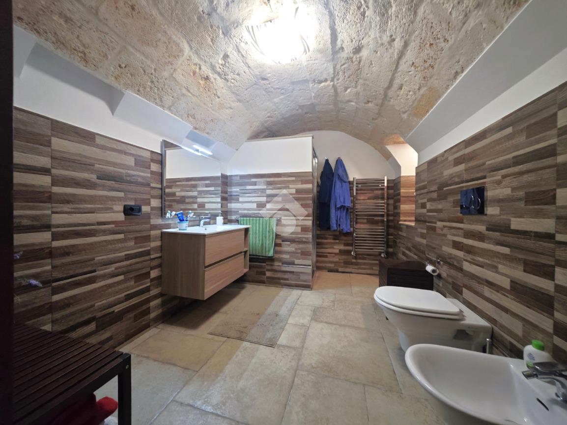 Rifiniture interne: porta blindata, infissi in PVC con vetrocamera, inferriate, pavimentazione in laminato, due camini, marmo in pietra di Trani, riscaldamento autonomo con doppia caldaia gas metano, climatizzatori, sanitari sospesi.